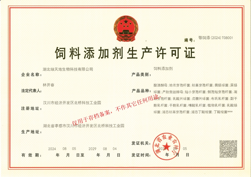 湖北綠天地生物科技有限公司 (簡稱綠天地公司)投資7000萬元,擁有25000平方米的廠房和國內(nèi)先進(jìn)的設(shè)備360臺套,建有微生物發(fā)酵、發(fā)酵冷凍干燥、低溫造粒等8個車間,發(fā)酵罐總?cè)萘?50立方米,專業(yè)的飼用級益生菌發(fā)酵生產(chǎn)基地。 公司已通過IS09001:2015質(zhì)量管理體系認(rèn)證。 綠天地公司得到了華中農(nóng)業(yè)大學(xué)、中國農(nóng)...